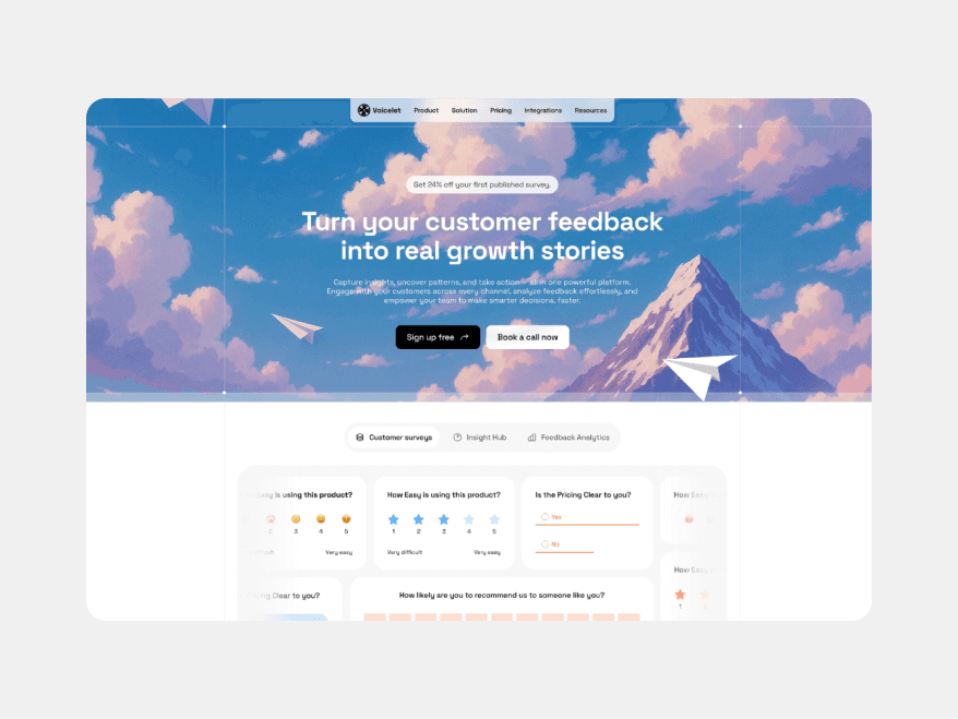 Voicelet is a SaaS platform that helps businesses create and manage online surveys with ease. I designed a clean, conversion-focused website that clearly communicates the product’s value, builds trust, and guides users toward sign-up.